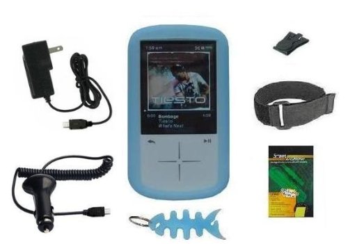 7 Items Accessory Combo Kit for Sandisk Sansa Fuze+ Plus 4GB 8GB 16GB MP3 Player: Includes Blue Silicone Skin Case Cover, Armband, Belt Clip, LCD Screen Protector, Wall Charger, Car Charger and Light Blue Fishbone Style Keychain Overview