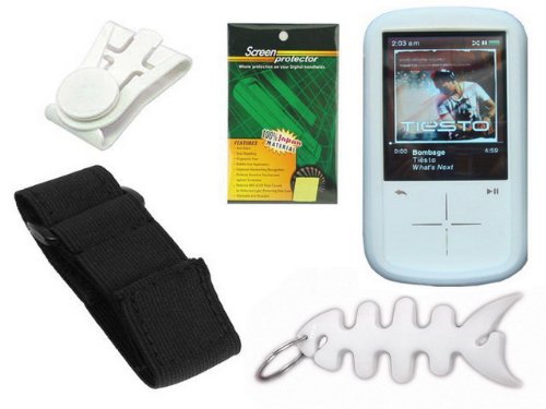 iShoppingdeals - Black/Clearwhite Silicone Soft Case With Armband and Beltclip + USB Car Charger + USB Wall Charger + USB Cable + Screen Protector + Fishbone Keychain for Sansa Fuze 2GB 4GB 8GB for Sale - Review & Buy at Cheap Price