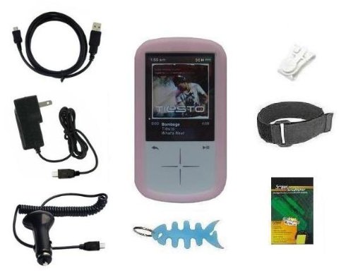 8 Items Accessory Combo Kit for Sandisk Sansa Fuze+ Plus 4GB 8GB 16GB MP3 Player: Includes Pink Silicone Skin Case Cover, Armband, Belt Clip, LCD Screen Protector, Wall Charger, Car Charger, USB Data Cable and Light Blue Fishbone Style Keychain Overview